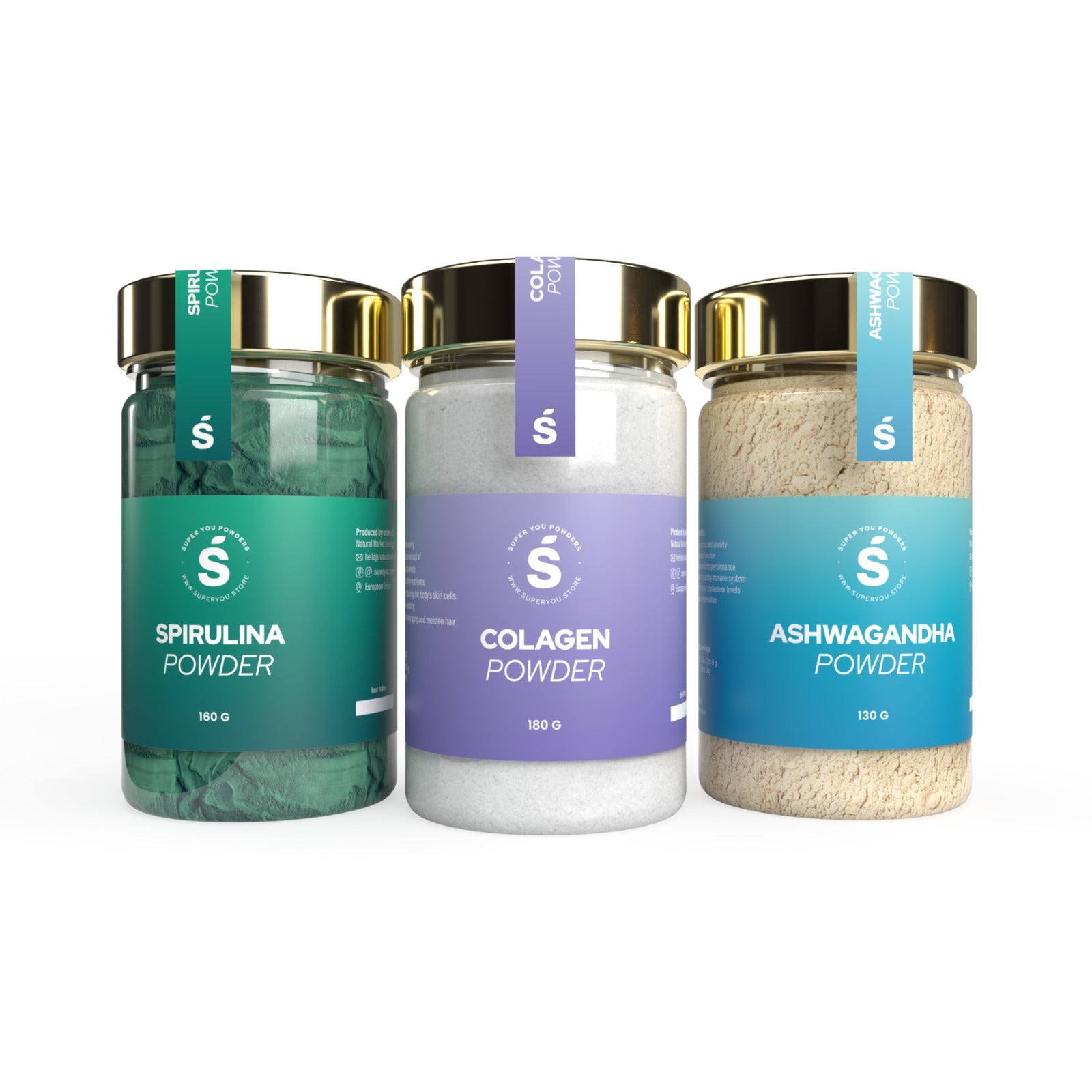 š Atjaunojiet savu Ä·ermeni no iekÅ”puses ar mÅ«su DetoksikÄcijas komplektu, spÄcÄ«gu SpirulÄ«nas, KolagÄna un Ashwagandhas kombinÄciju, kas paredzÄta detoksikÄcijai, enerÄ£ijas palielinÄÅ”anai un lÄ«dzsvara atjaunoÅ”anai. NeatkarÄ«gi no tÄ, vai vÄlaties uzlabot savu dabisko skaistumu, palielinÄt enerÄ£iju vai samazinÄt stresu, Å”is superfood trio piedÄvÄ ideÄlu risinÄjumu.