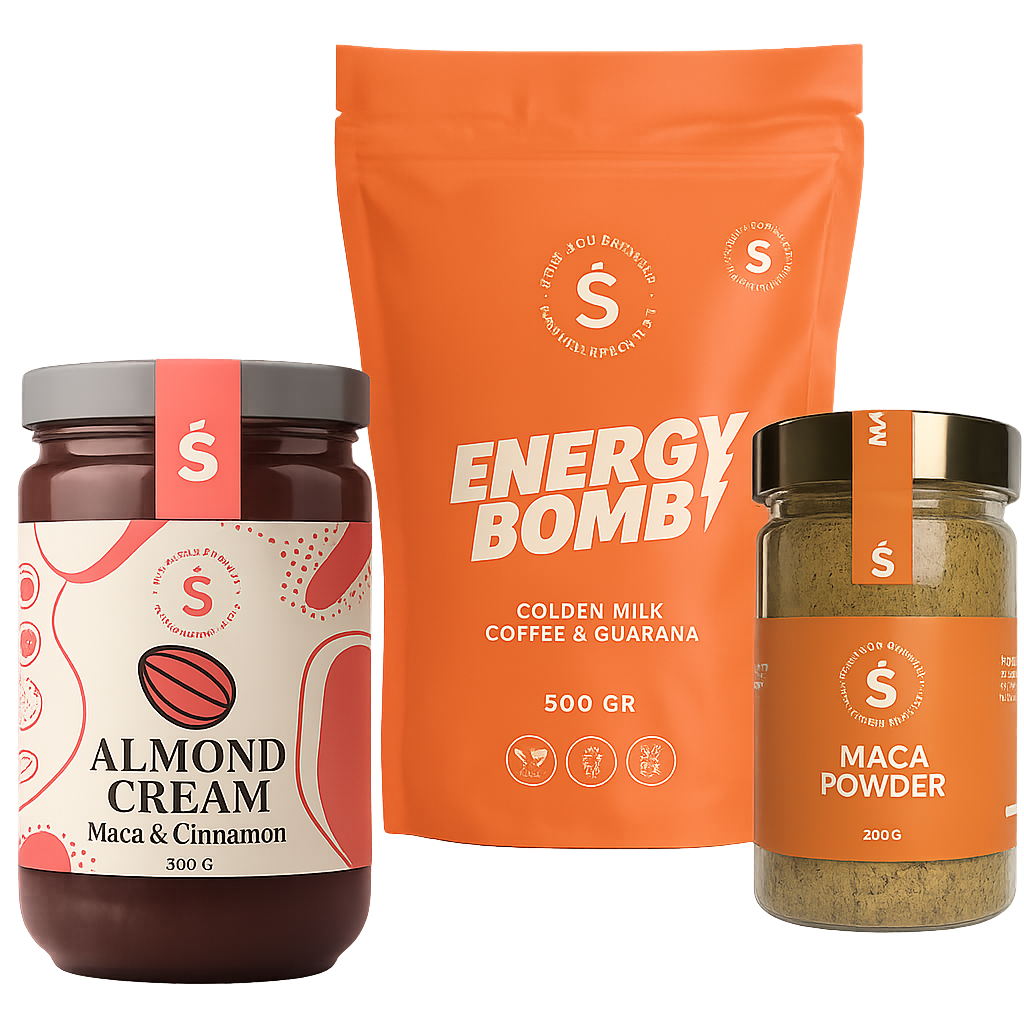 1x Almond Butter with Cinnamon & Maca – Delicious and functional. Supports testosterone production and keeps you energized throughout the day.